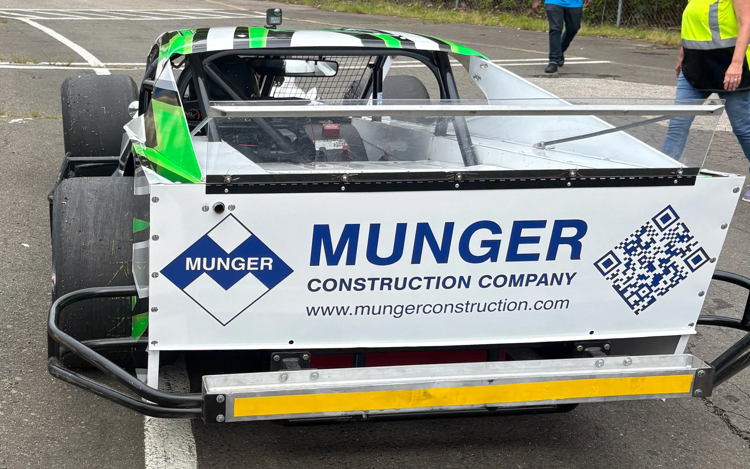 New to the car this week but already part of the team — proud to have Pat Munger Construction on board for the ride!